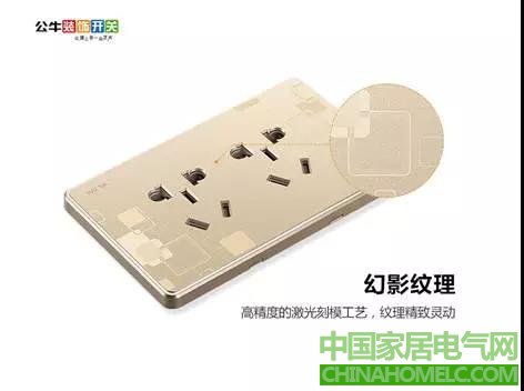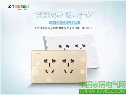 为了解决以上的情况,公牛推出了“幻影纹理118系列装饰开关”。外形上看,公牛幻影纹理118系列紧贴时下流行风格,无框大面板设计,简约中彰显大气,方寸间展现格局。