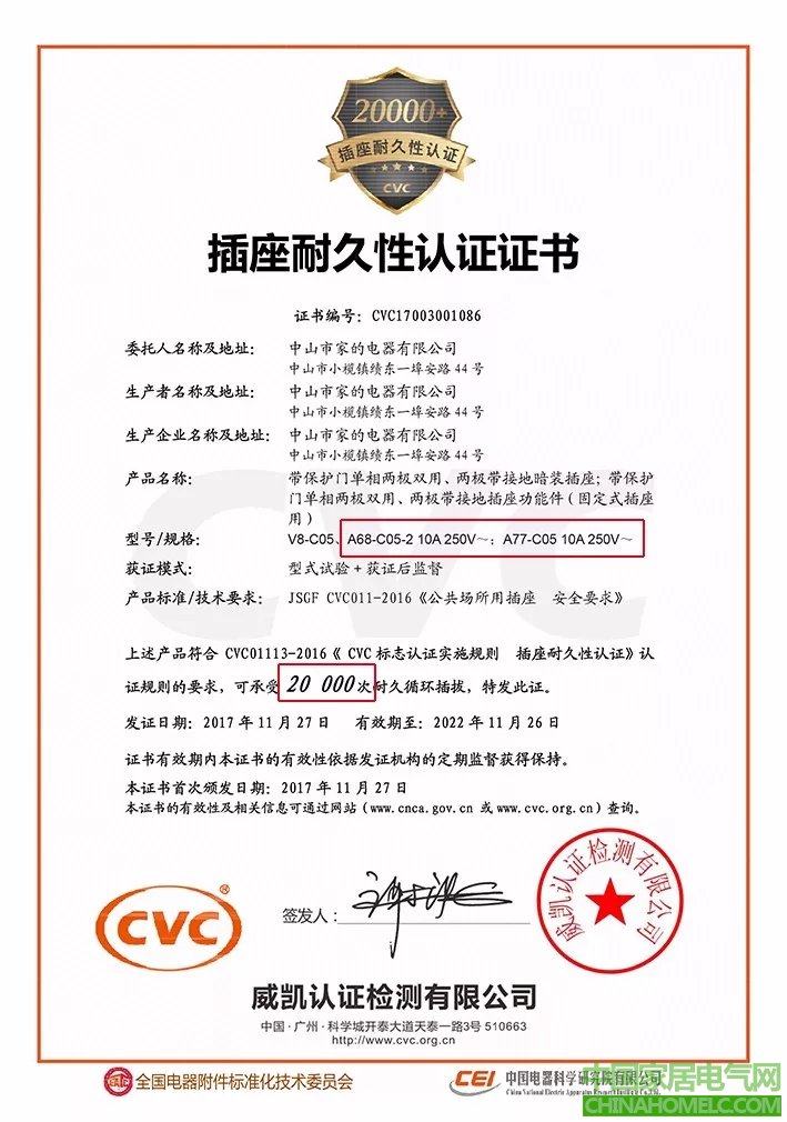 并取得插座耐久性认证证书