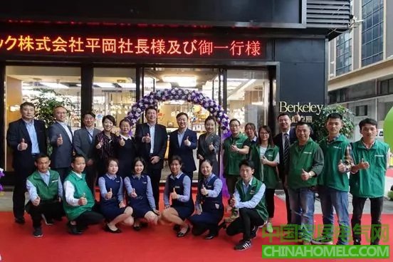 日本东芝照明社长平冈先生(左六)等参观雷士集团旗下子品牌伯克丽Berkeley风格店